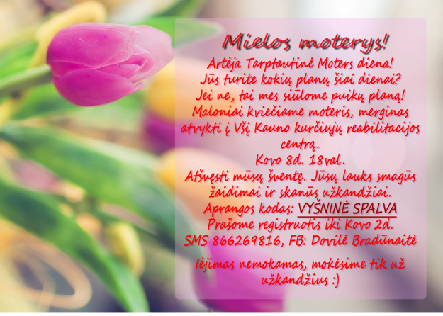 Vasario 25 d. 14 val. kviečiame linksmai ir triukšmingai išlydėti žiemą, o 17 val Jūsų laukia smagus ir pirmą kartą organizuojamas konkursas „Mano vyras gali”.