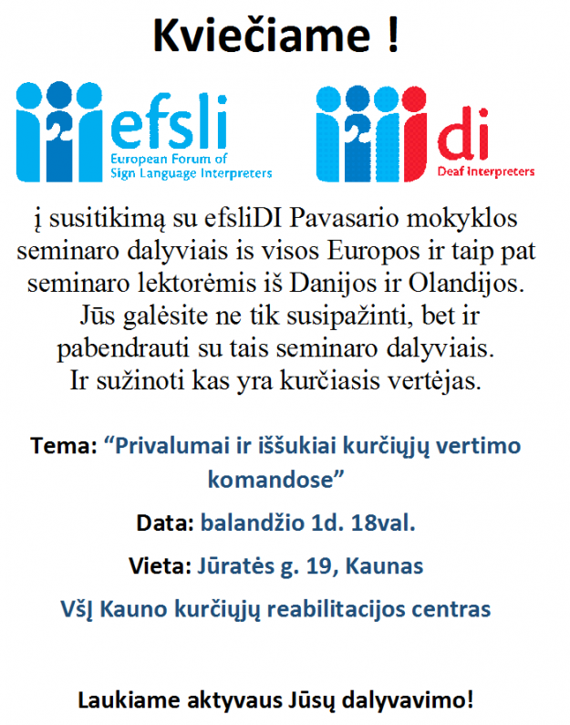 Š. m. balandžio 6 d., 17.30 val. LKD Kauno teritorinės valdybos salėje (Jūratės g. 19) vyks kurčiųjų visuotinis susirinkimas. Kurčiųjų draugijos narius kviečiame aktyviai dalyvauti.