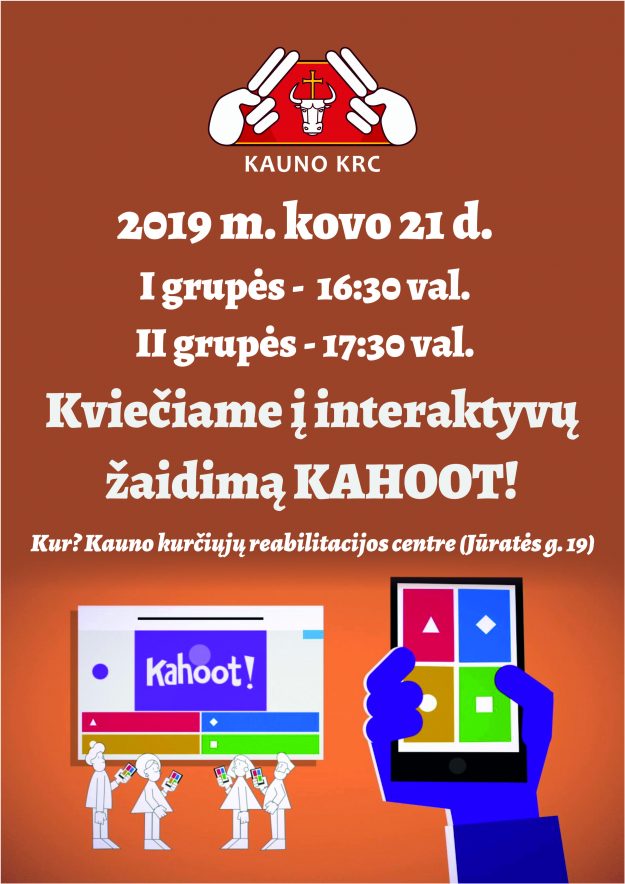 2019 m. kovo 21 d. 16:30 val., 17:30 val. Skelbimai2019 19 vasario Kviečiame į interaktyvų žaidimą KAHOOT!