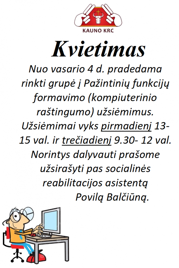 2019 m. nuo vasario 4 d. Kitos informacijos2019 11 vasario Kviečiame į Pažintinių funkcijų formavimo užsiėmimus
