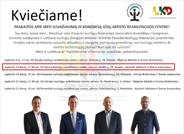 Šių metų liepos mėn. Paryžiuje vyko Pasaulio kurčiųjų federacijos generalinė asamblėja ir kongresas kuriame dalyvavo ir Lietuvos kurčiųjų draugijos atstovai. Nori apie tai sužinoti kviečiame ateiti ir dalyvauti (video)
