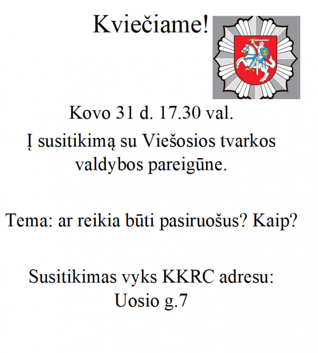 Kviečiame į susitikimą su Viešosios tvarkos valdybos pareigūnais