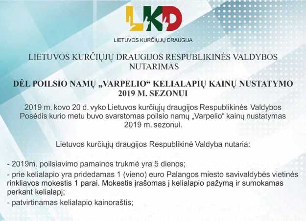 2019 m. Kitos informacijos, LKD, Skelbimai2019 2 balandžio Dėl poilsio namų „Varpelis” kelialapių kainų nustatymo
