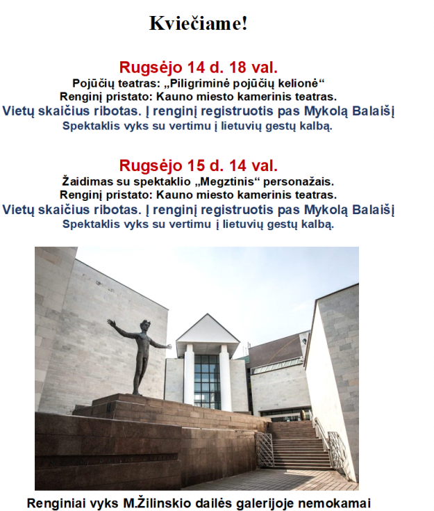 2018 m. rugsėjo 14 d. 18 val. + rugsėjo 15 d. 14 val. Skelbimai2018 10 rugsėjoKviečiame į renginius M.Žilinsko dailės galerijoje.