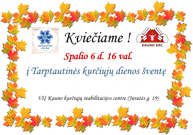 2018 m. spalio 6 d. 16 val. Kitos informacijos, Skelbimai2018 10 rugsėjoTarptautinė kurčiųjų diena Kaune.